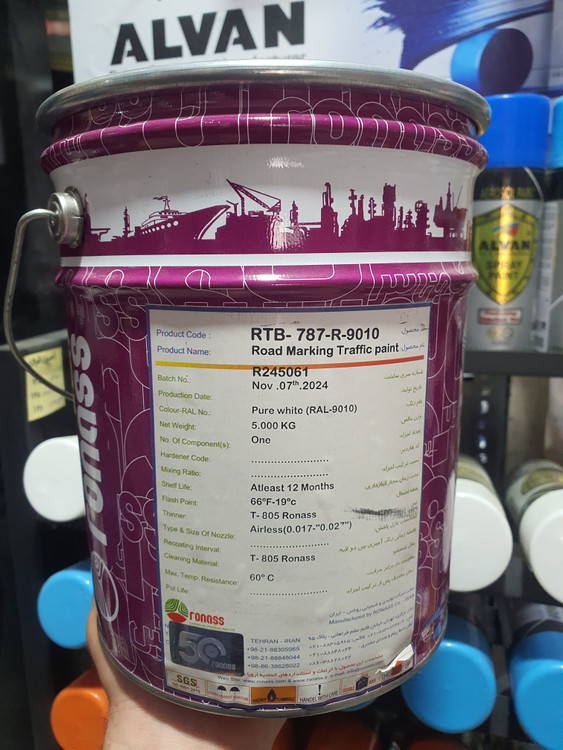 - کاربردها :ﺟﻬﺖ ﺧﻂ ﮐﺸﯽ ﻃﻮﻟﯽ ﺧﯿﺎﺑﺎﻧﯽ ﺑﺎ ﻣﺎﺷﯿﻦ ﺧﻂ ﮐﺸﯽ ﻣﺨﺼﻮص، خط کشی دستی، رنگ آمیزی ﺧﻄﻮط ﻋﺎﺑﺮ ﭘﯿﺎده و ﺳﻄﻮح ﭘﺮﺗﺮدد و در ﻣﻌﺮض UV، خط کشی سالنهای ورزشی و رنگ آمیزی کف پارکینگ